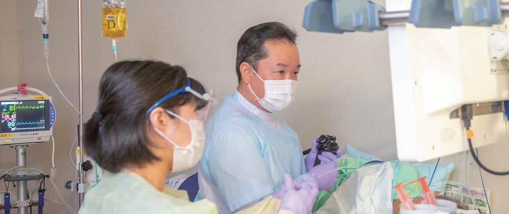 緊急内視鏡治療、消化器がん診療、炎症性腸疾患診療、肝胆膵疾患診療を軸として、それぞれの領域にエキスパートを揃えた診療体制を整備することで地域高度医療をリードする事を目標としています。急性出血性胃潰瘍や食道胃静脈瘤の内視鏡的消化管止血術は非常に重要な治療のひとつです。また総胆管結石による急性胆管炎も緊急内視鏡治療に該当します。これらの治療は全て救急医との連係が必要であり、当院はそれが可能でございます。種々の感染症がおさまらない中でも感染症対策を実施しこれらの治療を安全に施行しています。