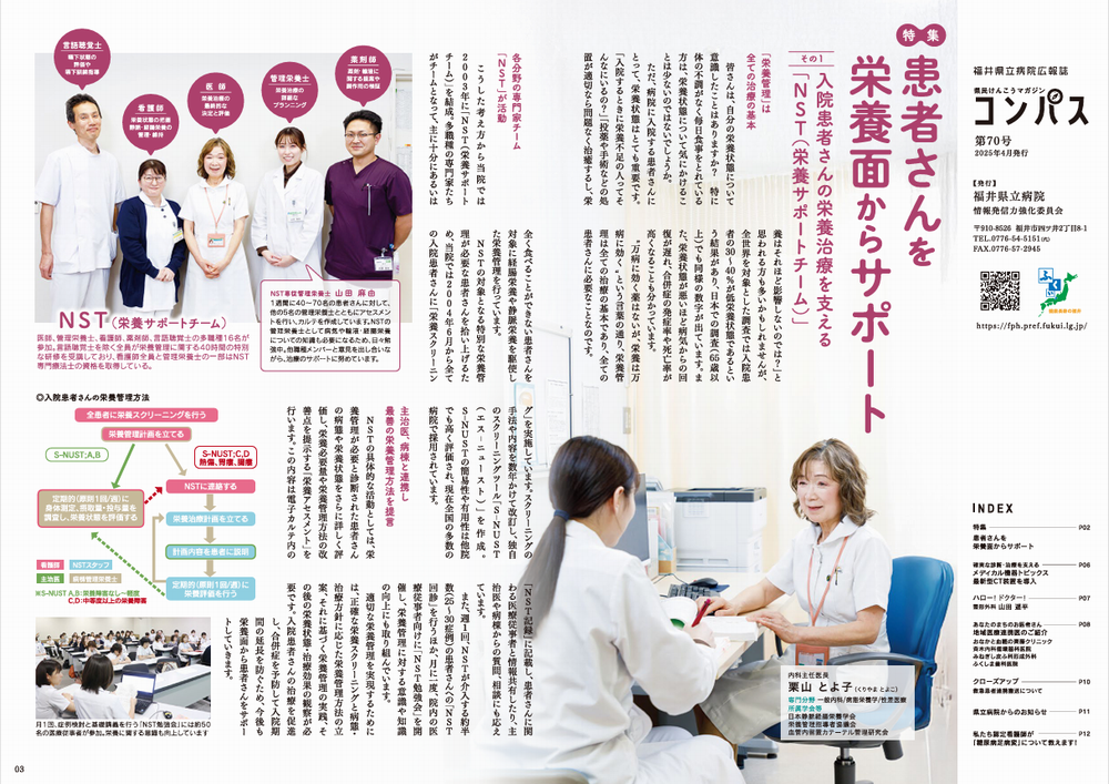 福井県立病院では平成15年7月からNST活動を開始し(図1;NST活動フローチャート)、以下を活動の目標としています。