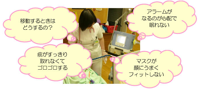 人工呼吸器という命に直結する機械をご自宅で使用することに不安なことはないですか?アラームがなったり、咳込みで辛そうだったり、困っていることはありませんか?