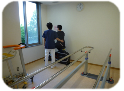 病棟内に、理学療法室が設置され、入院してすぐに理学療法士によるリハビリが受けられます。私たち看護師も、日常生活における援助の工夫点などを理学療法士に相談でき、患者さんの早期回復にむけ一緒に取り組んでいます。