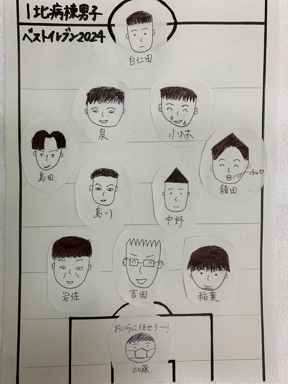 そんな私が、今回ご紹介するのは、救命救急センターの男性看護師です。気づけば、現在11名の男性看護師が所属しております。男性看護師をコナン君風に一言で言うと、「見た目はおじさん、中身は乙女!」ですかね。尚且つ、優男だと思います。男性看護師には男性看護師にしか共感できない事も多々あります。日々の勤務において、1人でも男性看護師がいるとなんだか安心するんですよね。あるあるだと思います。11名全員が揃う勤務は難しいですが、一致団結して病棟を盛り上げていきたいです。最後に字数制限があるため、全員の紹介はできないのが非常に残念です。