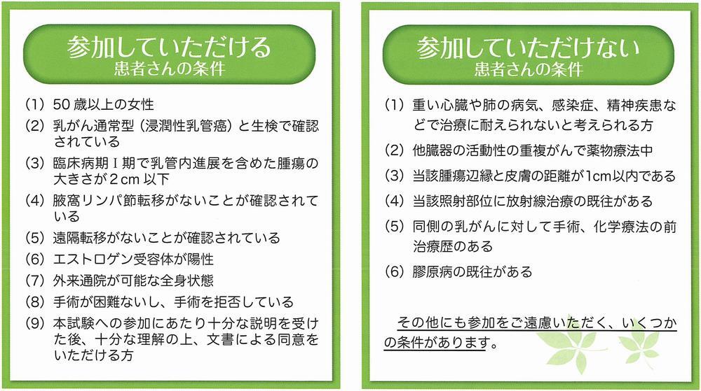 福井県立病院 > 診療科・医療技術部門・センター > 各種センター > 陽子線がん治療センター > 陽子線で治療できるがん > 陽子線による乳がん治療の臨床試験