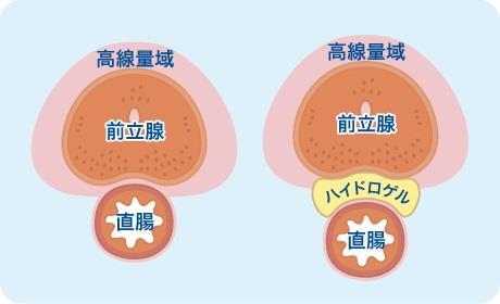 ハイドロゲルスペーサー留置術は、ハイドロゲルと呼ばれる液体を前立腺と直腸の間に注入し、前立腺と直腸の間隔を空けることで、直腸に照射される陽子線の量を減少させる技術です。