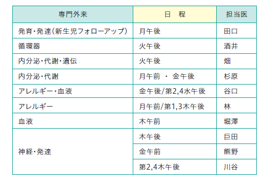 早産児、低出生体重児から中学生までの、小児患者全般の疾病