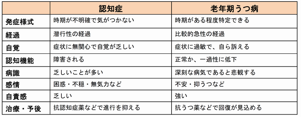 認知症と老年期うつ病の経過や臨床特徴の相違点