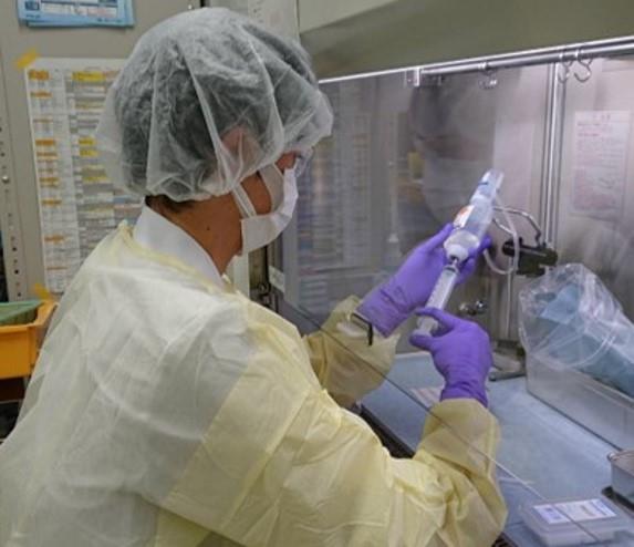 がんの薬物療法を行う場合、医師は患者さんそれぞれの状態にあわせて抗がん剤の種類や投与量、投与間隔などを決めます。薬剤師はこれらが適正であることを確認した後、クリーンルームの生物学的安全キャビネット内で抗がん剤を無菌的に混合調製しています。