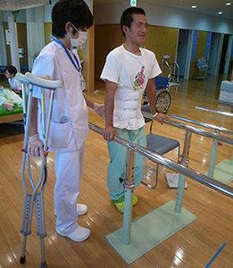 骨折、変形性関節症、脊髄損傷、筋・腱・靭帯を損傷された患者様に対し、関節可動域の維持・拡大、筋力の増強、立ち上がりや歩行などの基本動作の練習、日常生活を自立して行うための更衣、食事、排泄などの動作練習を行います。また、水中トレッドミルを使用した水治療法や痛みの軽減、血液循環の改善、リラクゼーション等の目的で物理療法も行っています。