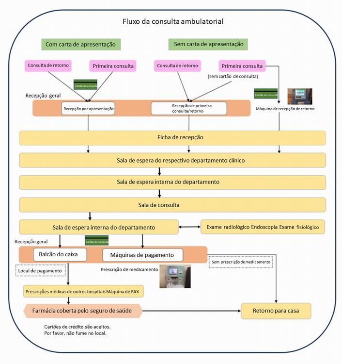 - Apresente a "ficha de recepção" recebida na sala de consulta e aguarde perto da recepção do departamento clínico.