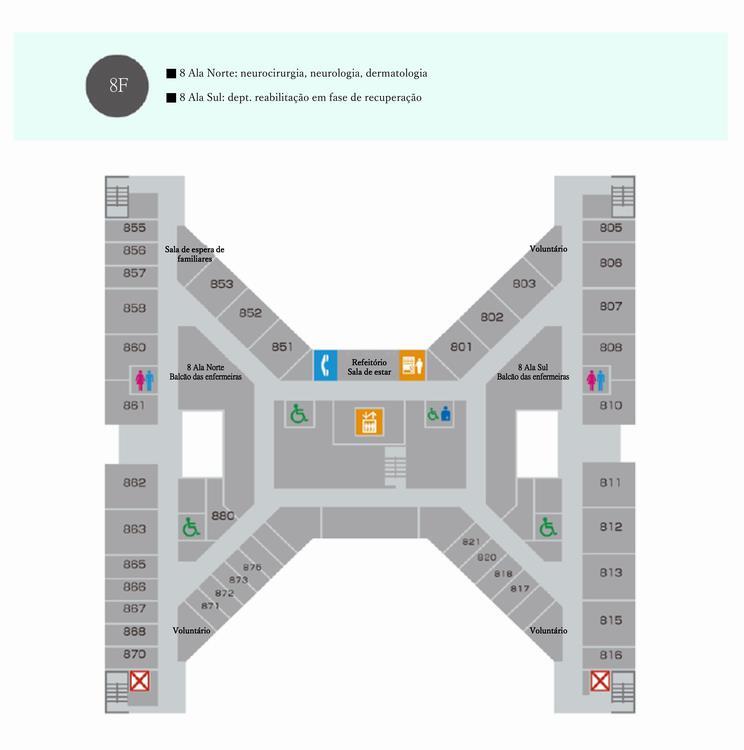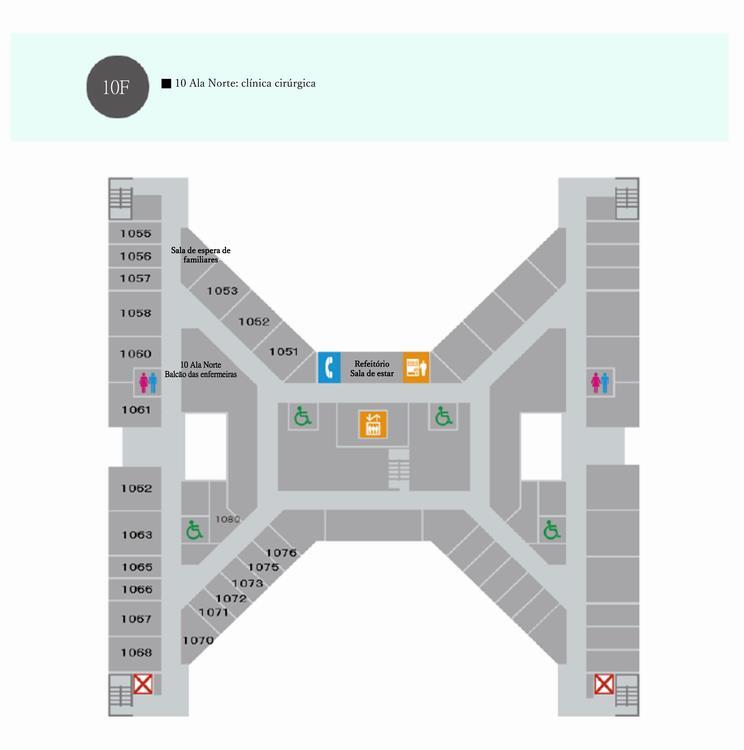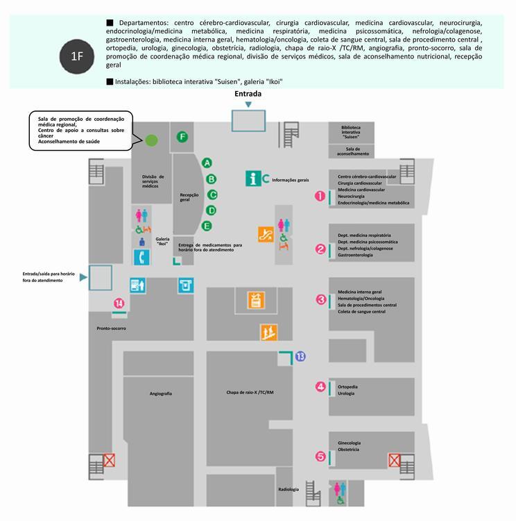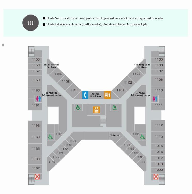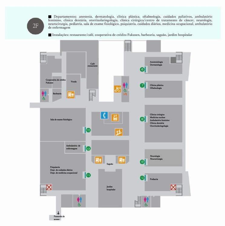 福井県立病院 > PORTUGUÊS > Introduction of the hospital > Mapa dos andares