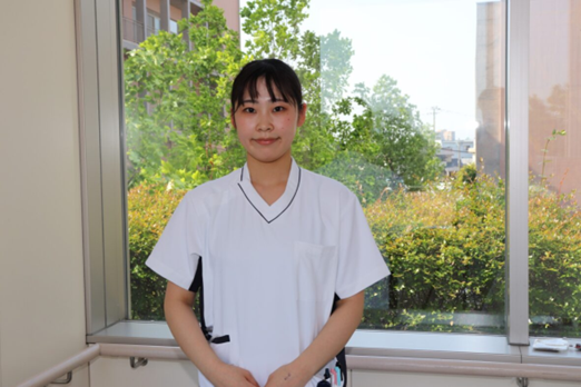 私は、循環器内科、心臓血管外科、眼科の混合病棟で勤務しています。配属当初は毎日が不安と緊張でいっぱいでしたが、先輩が優しく丁寧に指導してくださるので、日々新たな技術、知識を得ることができています。できることが少しずつ増えていく中で、看護師という仕事にやりがいを感じています。今後もさらに知識や技術を身につけ、患者さんの思いに寄り添い、質の高い看護を提供できるように励んでいきたいです。皆さんと一緒に働ける日を楽しみにしています。